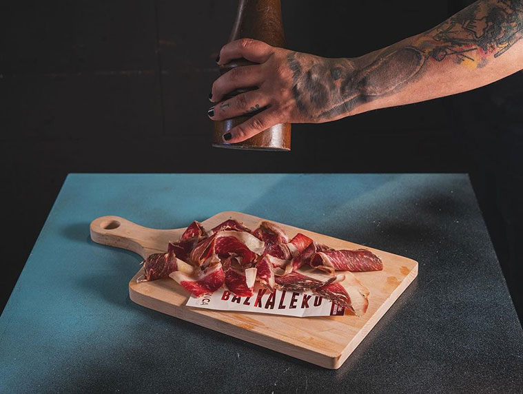 Su especialidad son las tapas y raciones de sabores tradicionales como los callos de ternasco, las cocochas de bacalao al pil-pil, las madejas de cordero, los calamares fritos o la deliciosa tortilla de patata sobre salsa de pimentón y cominos.